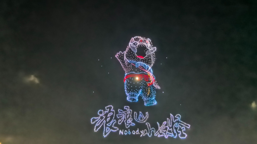 上海徐汇滨江西岸梦中心,无人机展演以夜空为舞台。